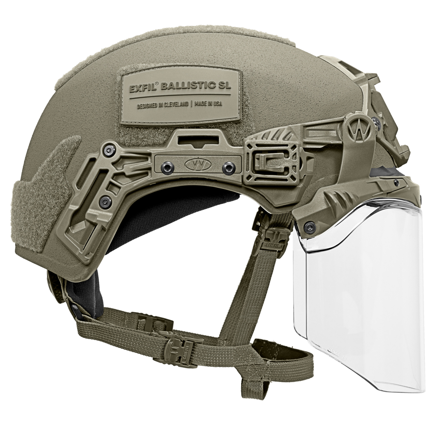 EXFIL Face Shield Installed on the EXFIL Ballistic SL Ranger Green